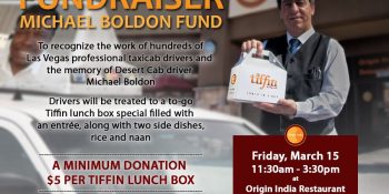 Origin India Restaurant and Bar will host a special fundraiser event, on Friday, March 15, from 11:30am to 3:30pm, to recognize the work of hundreds of Las Vegas professional taxicab drivers and the memory of Desert Cab driver Michael Boldon.