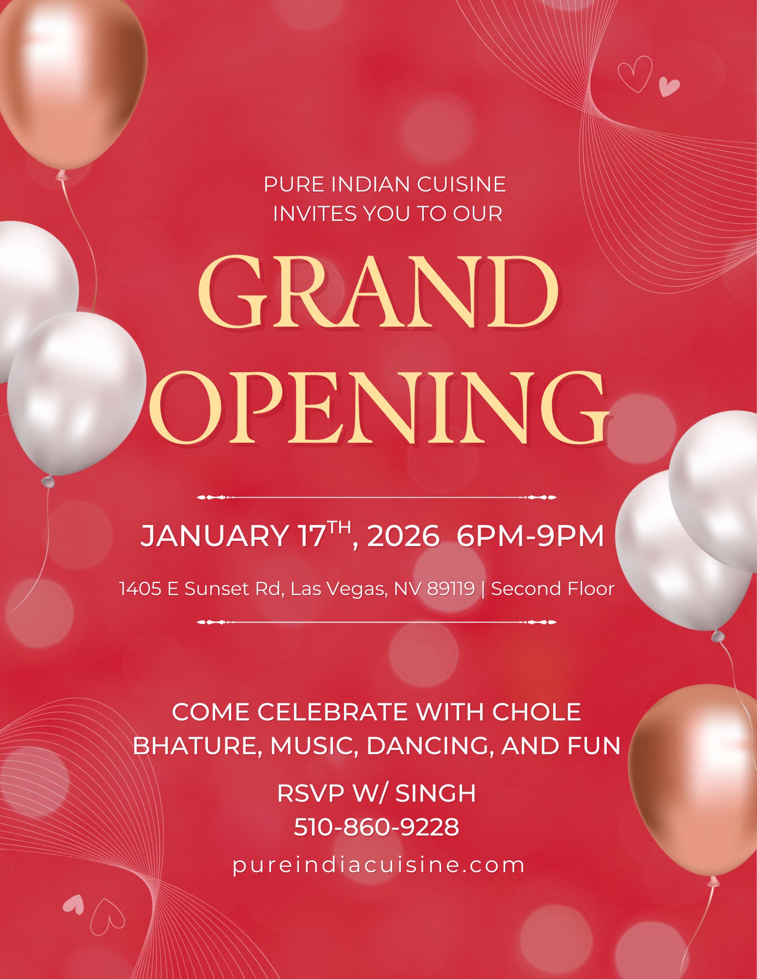 - What: Grand Opening Celebrations – Pure Indian Cuisine Restaurant